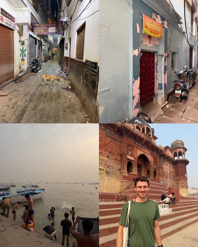 1. The nighttime alleyways. 2. Rajasthan Inn. 3. People “cleansing” themselves in the river. 4. Arabian architecture on the gnats.