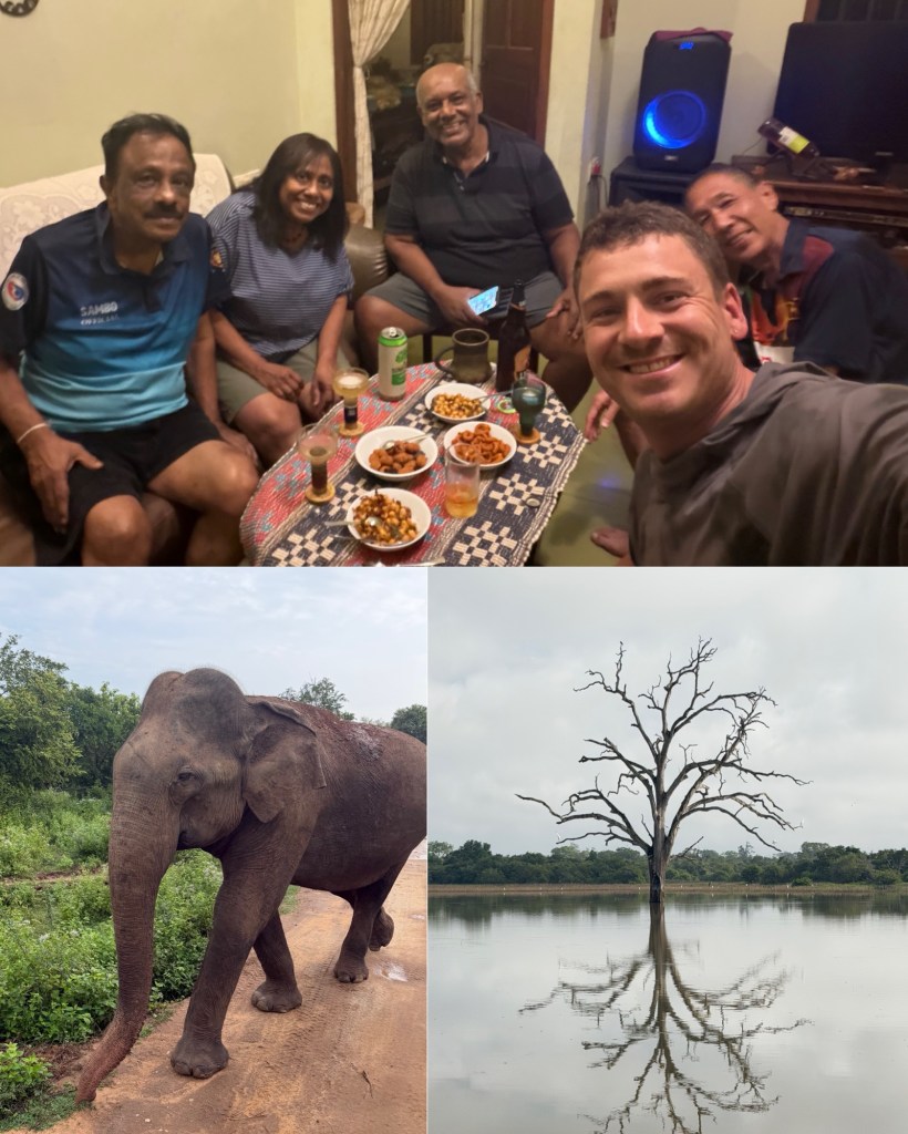 That evening, we took a sunset elephant tour along the park’s edge. I sat in the passenger seat of Basa’s modified Mahindra jeep as we spotted massive wild elephants moving through the landscape. Back at his home, he served chicken curry with roti, introduced me to unfamiliar fruits. He welcomed me to spend the night with his family as they celebrated the New Year around a coffee table. We listened to Sri Lankan music and shared tea that eventually turned to beers.